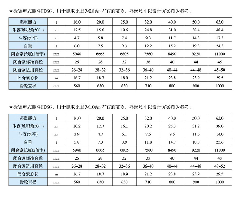 剪式抓斗是把兩個(gè)顎板靠鉸點(diǎn)的端部延長(zhǎng)為繩索式加力臂,兩臂公用一個(gè)叫中心鉸點(diǎn),剪式抓斗開(kāi)啟動(dòng)作依靠放松剪臂處滑輪組的鋼絲繩,收緊支承繩來(lái)完成,關(guān)閉動(dòng)作依靠收緊滑輪組的鋼絲繩,利用杠桿原理增力,使顎板閉合抓取物料,其閉合力矩隨著閉臺(tái)過(guò)程逐漸增加,抓取物料時(shí)干凈不漏料,多用在大型橋式卸船機(jī)上。